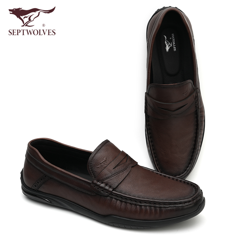 乐福鞋 七匹狼男鞋 豆豆鞋 头层牛皮软底软面真皮休闲皮鞋 子 2025新款