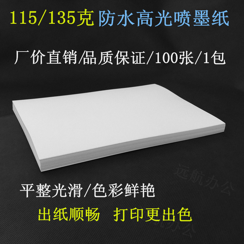 促销 135克A4防水高光彩喷纸薄相纸彩色喷墨打印机亮光专用纸 115
