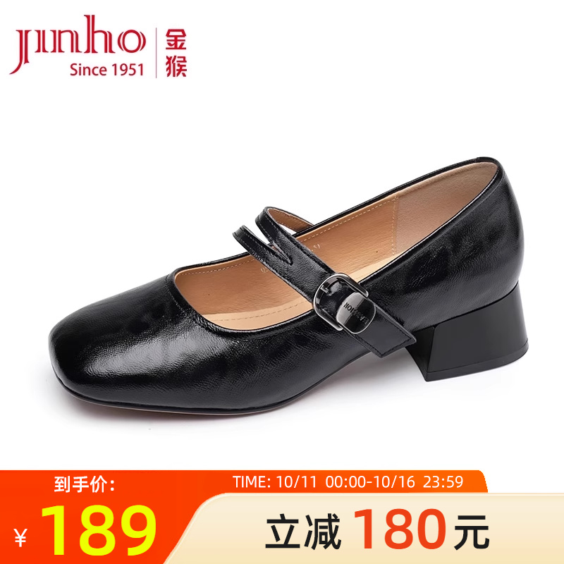 配裙子气质浅口单鞋 粗跟玛丽珍女鞋 子 小皮鞋 戈美其集合单鞋