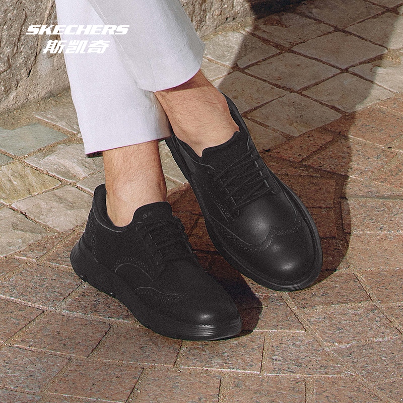 一脚蹬通勤商务休闲黑色皮鞋 男鞋 slipins2025夏新款 斯凯奇闪穿鞋