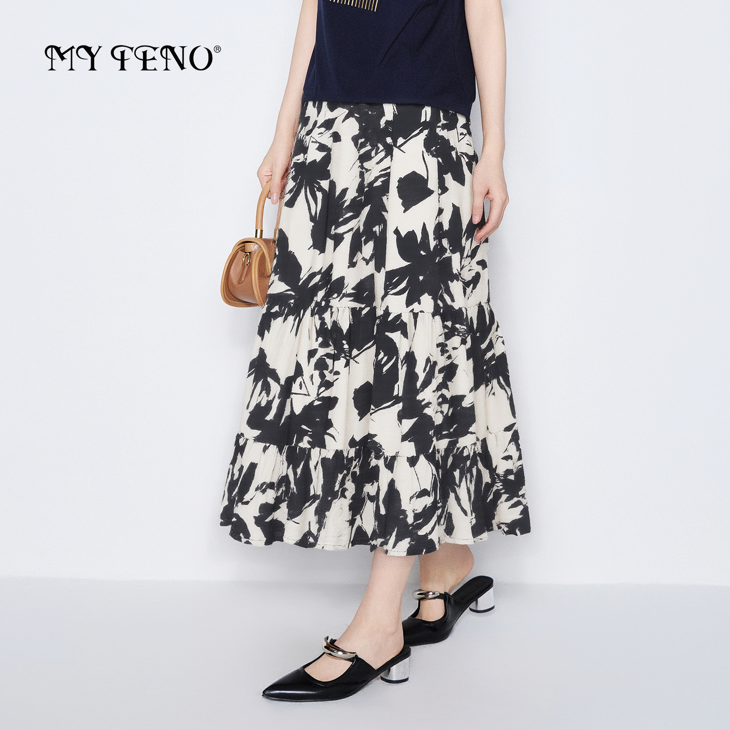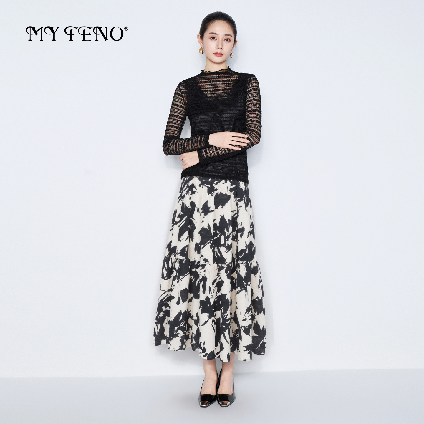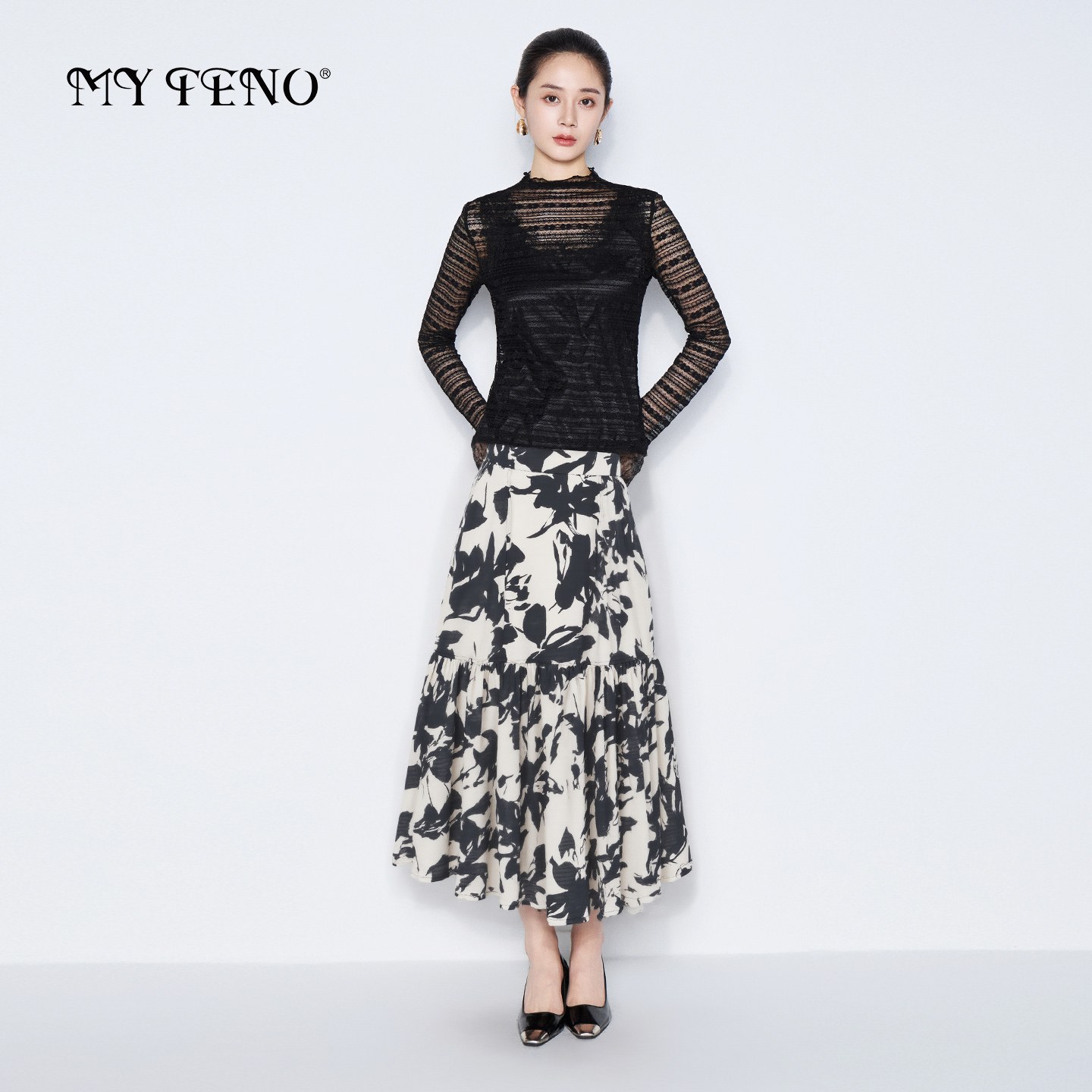 510457 木耳花边裙摆优雅美拉德半身裙子女装 三福长裙2025新款 冬季