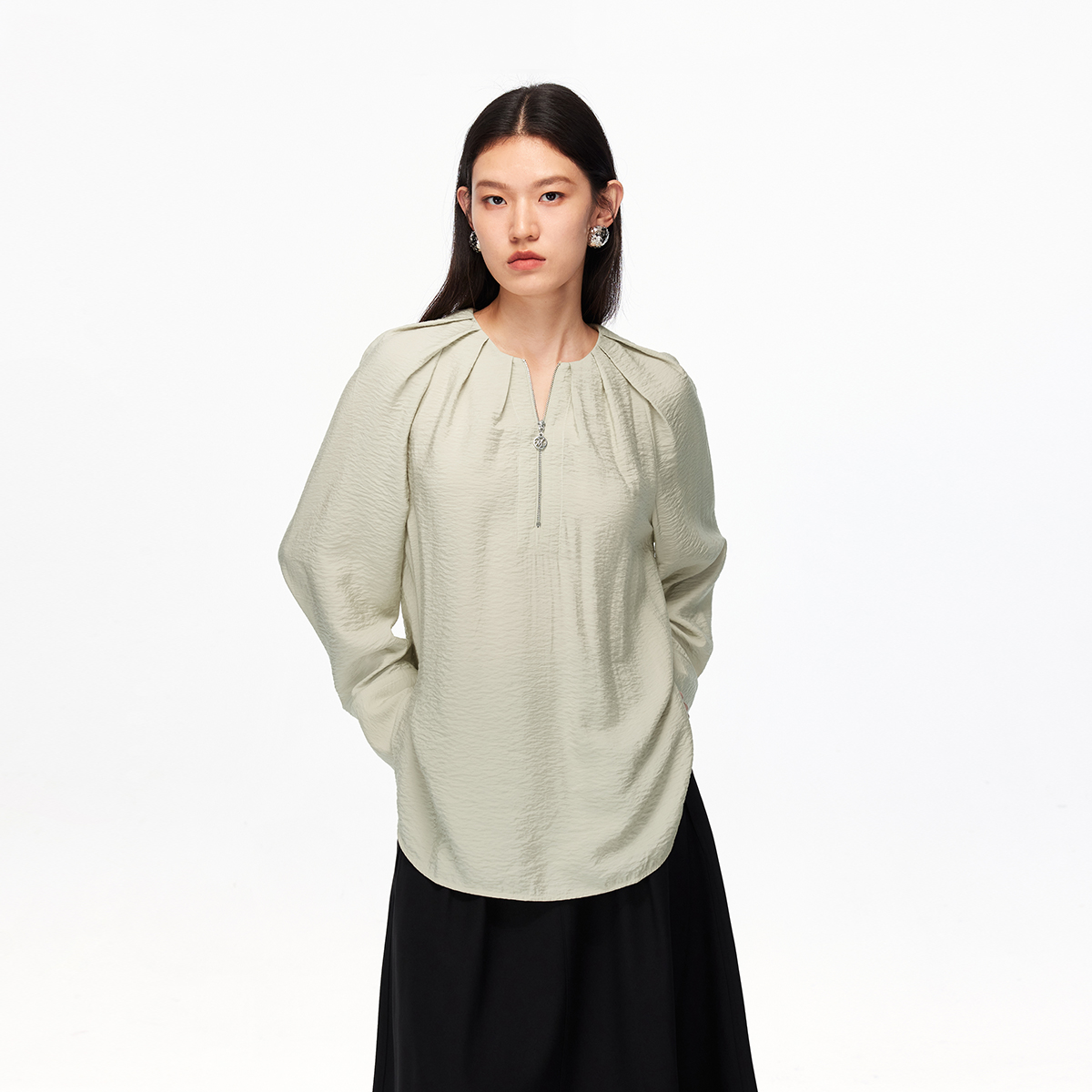 新款 女2025秋季 含桑蚕丝肌理感宽松落肩上衣 Moda奥莱衬衫 Vero