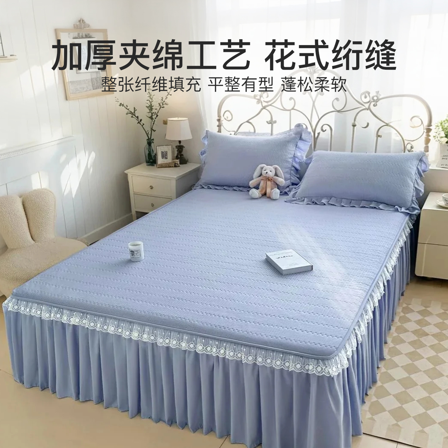 洁丽雅夹棉床裙单件2025新款 通用床裙 公主风遮丑下摆床垫套罩四季