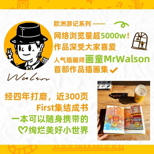 一本充满温暖与治愈力插画随笔集 欧洲旅行系列作品插画集 欧洲插画旅行治愈随笔 人气插画师画童MrWalson首本作品插画集 童画国