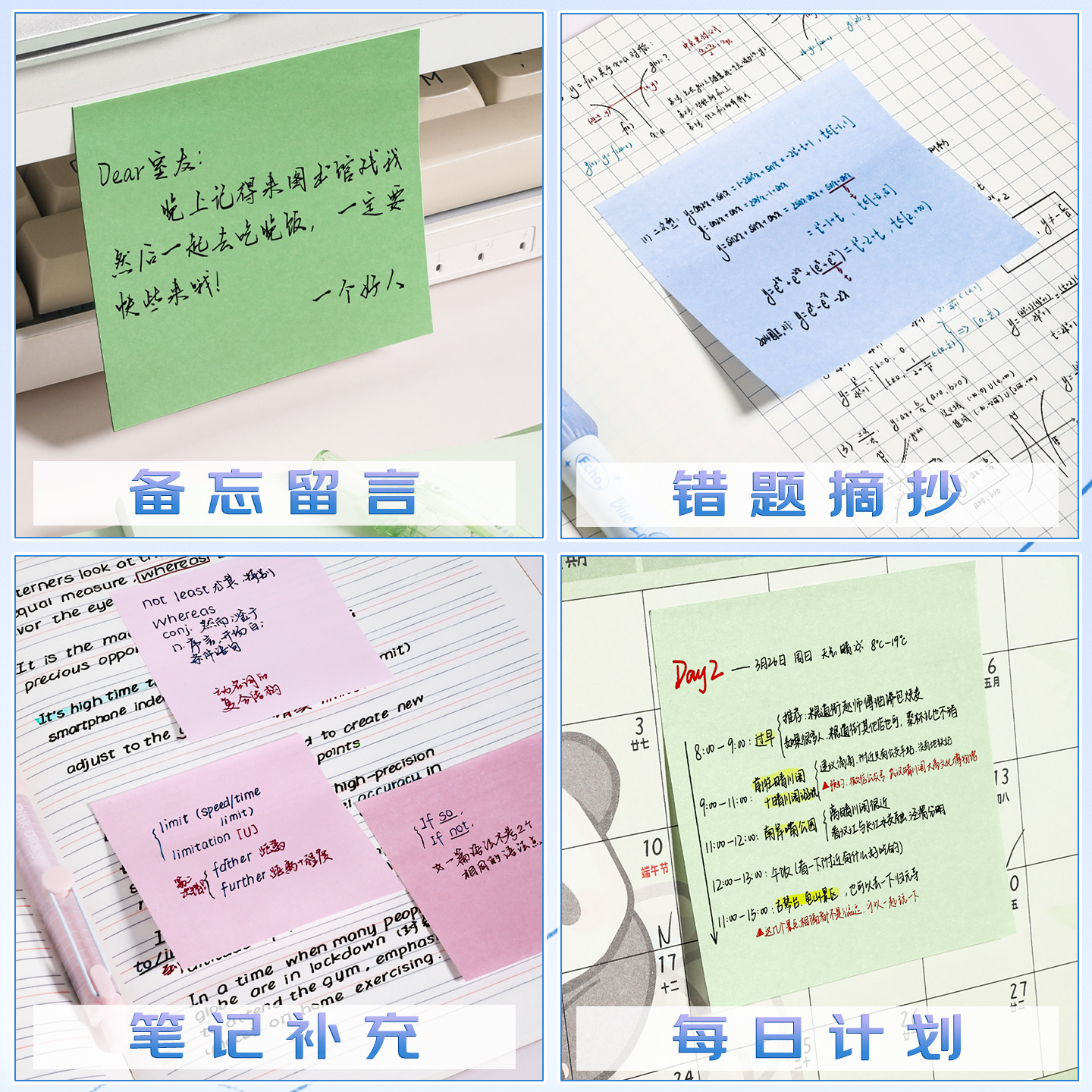 高颜值渐变便利贴有粘性小清新系标签贴便签贴纸初中生专用错题笔记留言贴可粘贴便签本高中记事小学生ins风
