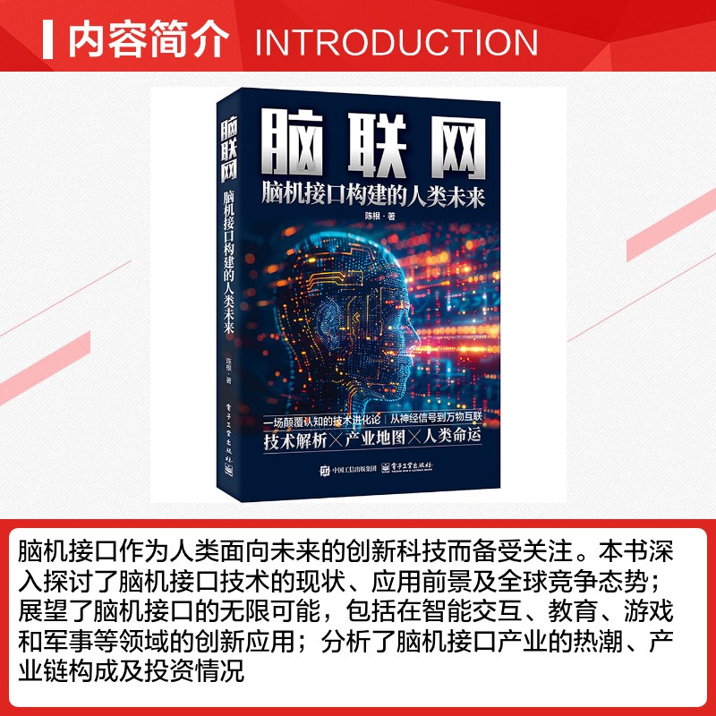 陈根 脑机接口技术 电子工业出版 脑机接口构建 社9787121496134 书籍 人类未来 正版 脑联网 现状应用前景及竞争态势