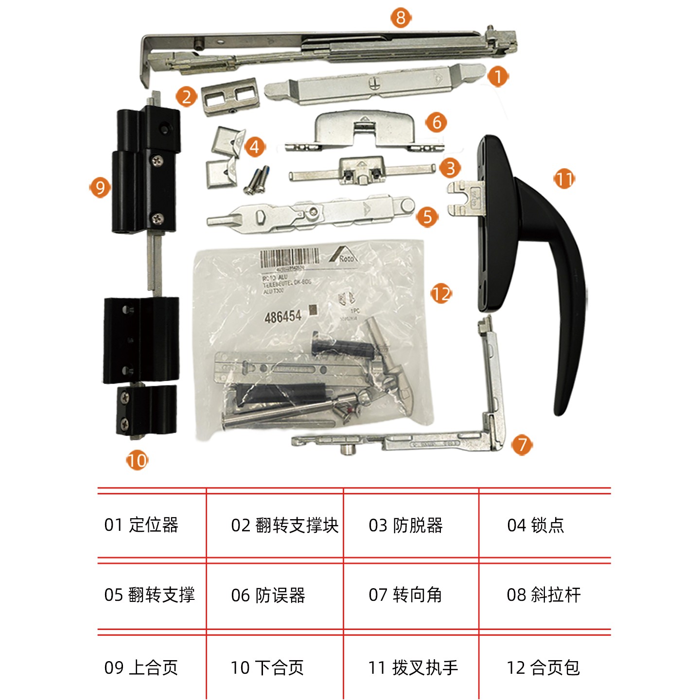 Roto断桥铝内开内倒五金配件上悬T300执手内开平开窗改诺托上悬窗