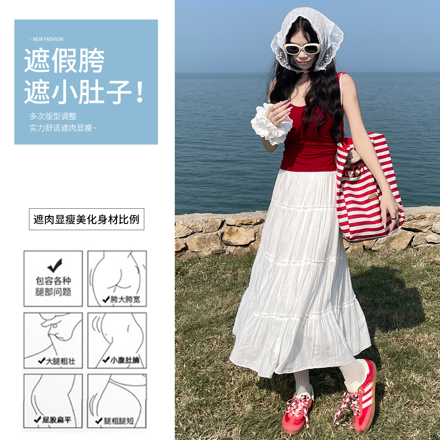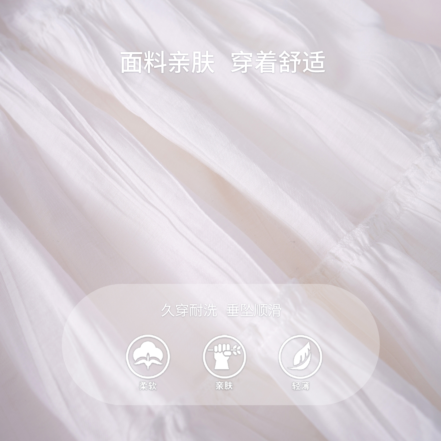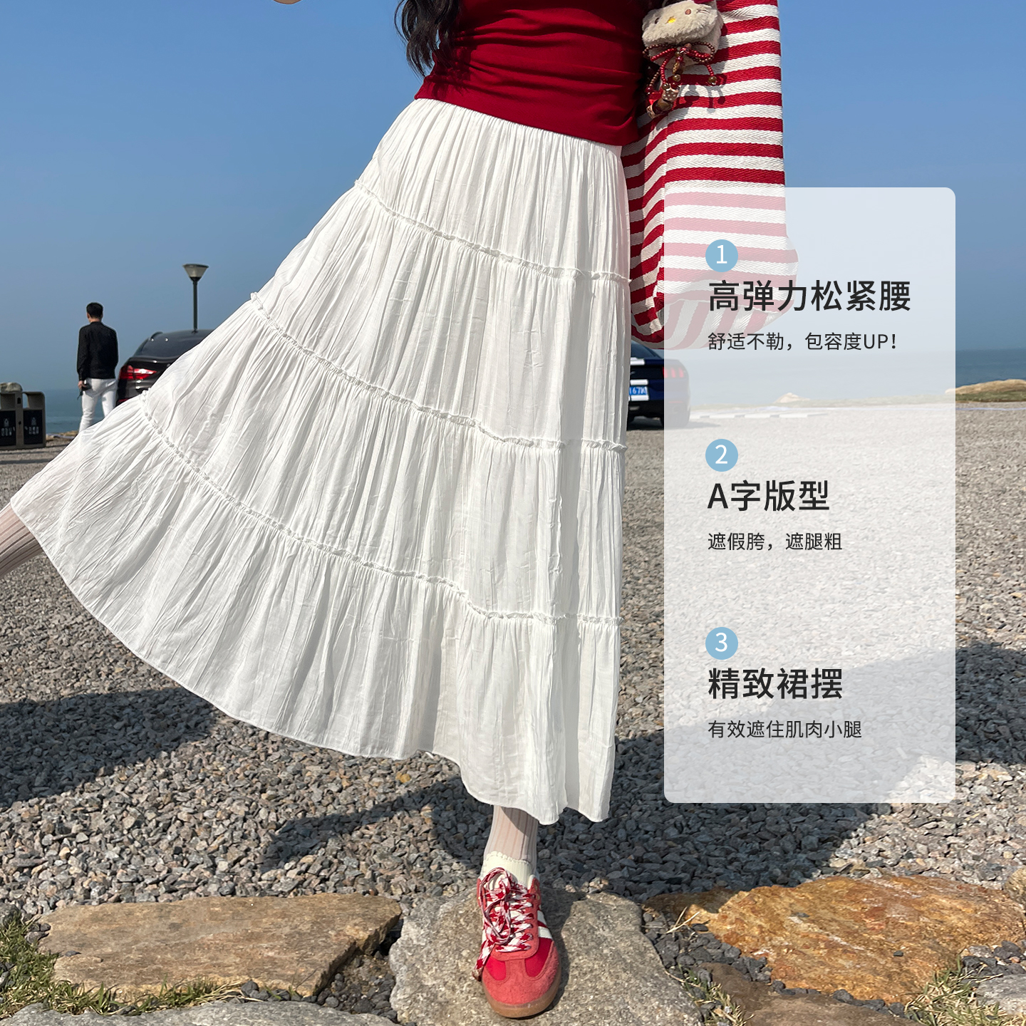 显瘦设计感褶皱a字蓬蓬蛋糕裙 中长款 白色半身裙女夏2025新款 薄款