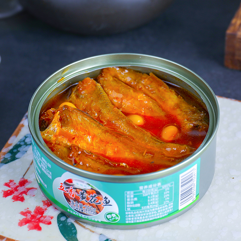 香辣黄花鱼罐头五香黄豆黄花鱼零食真空罐装 即食海鲜零食下饭宵夜