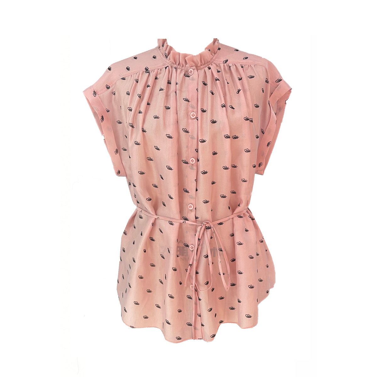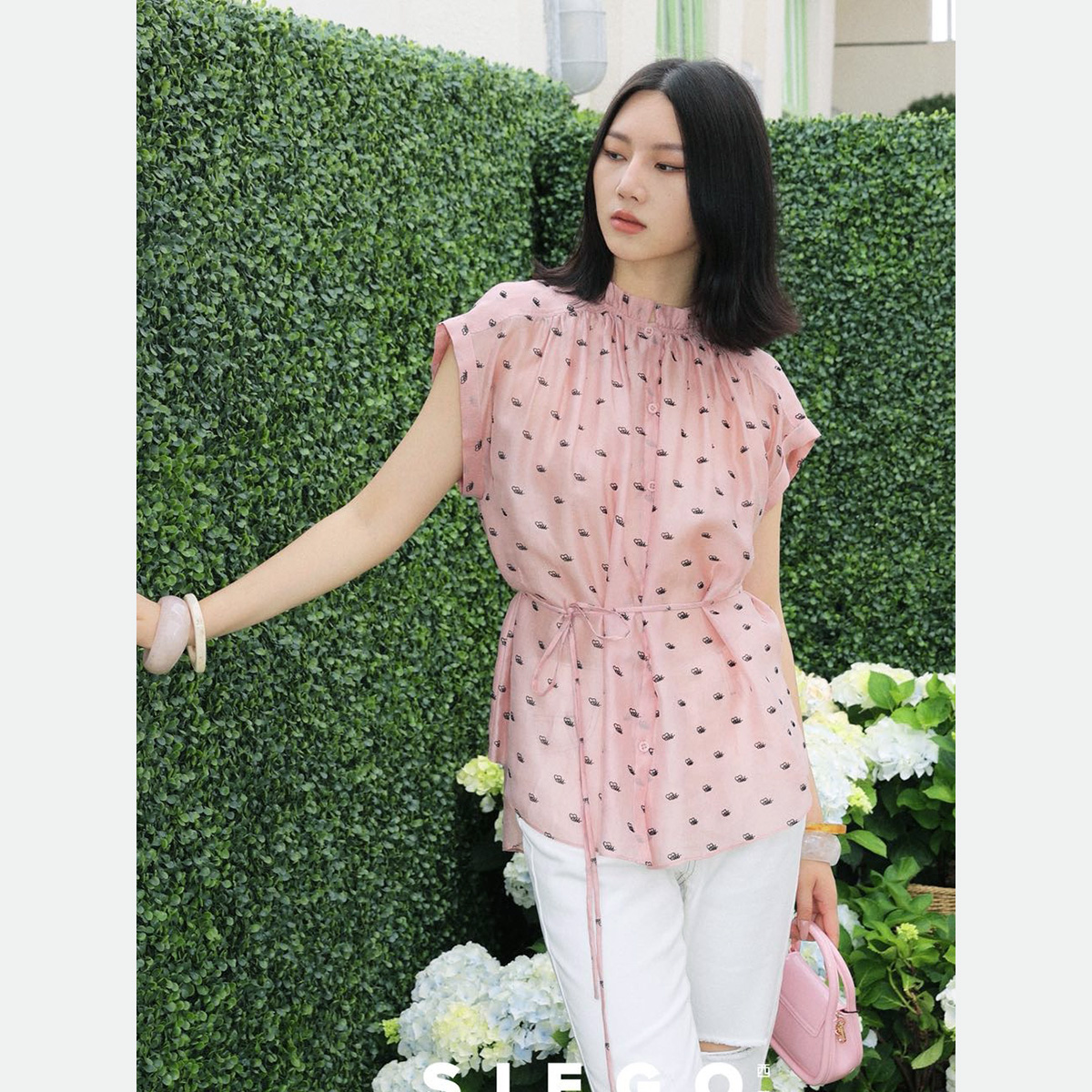 64334215 衬衫 Siego西蔻轻盈系带收腰款 透气花边领翻边袖
