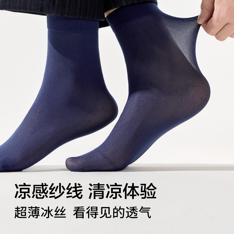 商务长袜 超薄丝袜中筒夏天透气黑白色男士 南极人袜子男款 冰丝夏季
