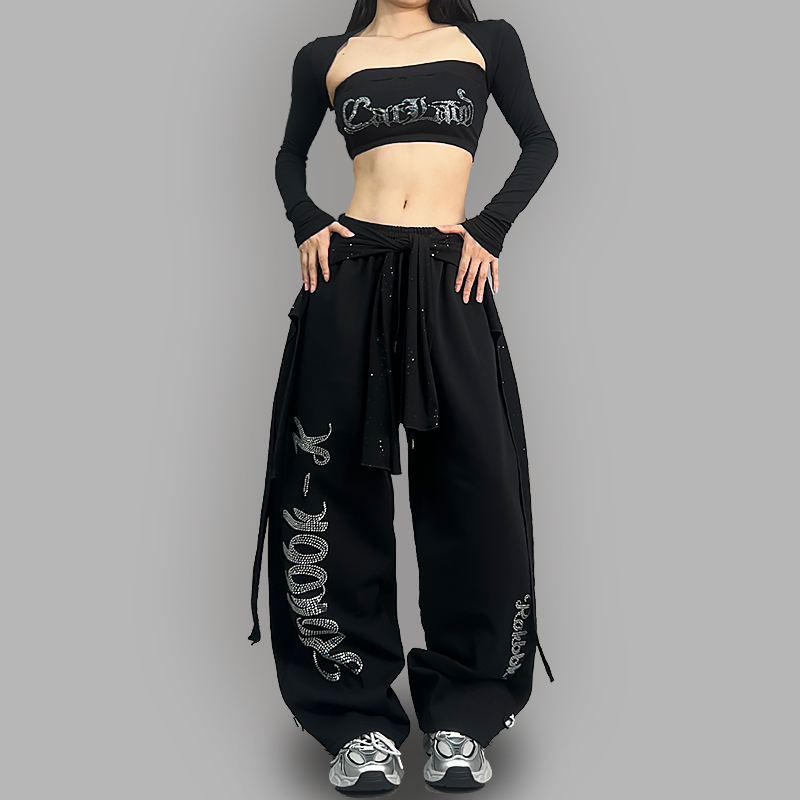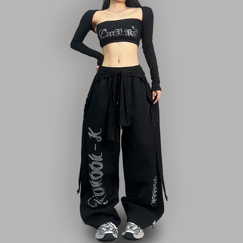 辣妹宽松休闲爵士舞长裤 布韩街舞潮牌夏季 女美式 运动裤 ROKBBK