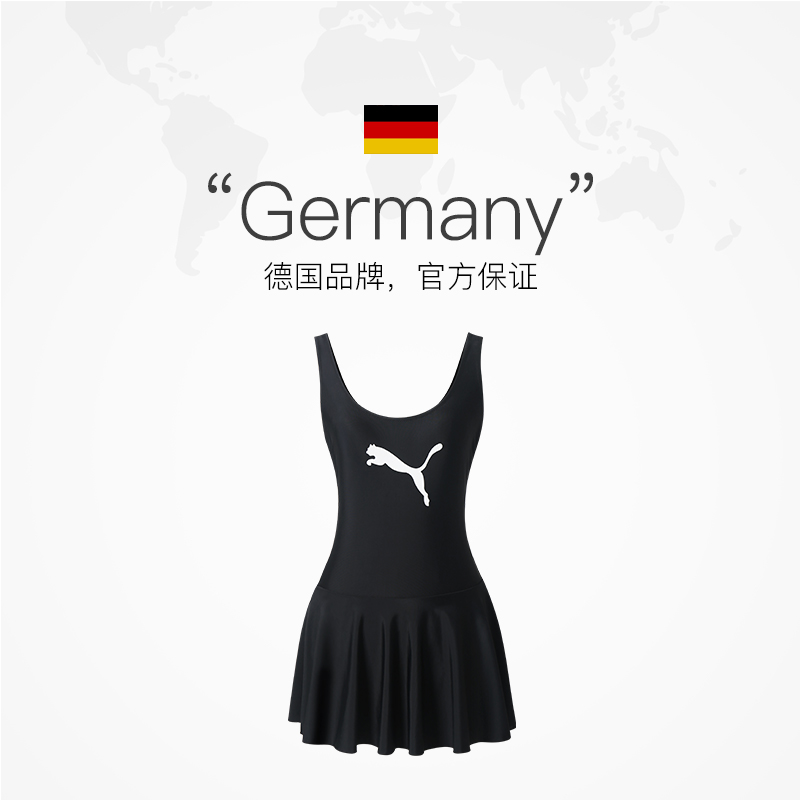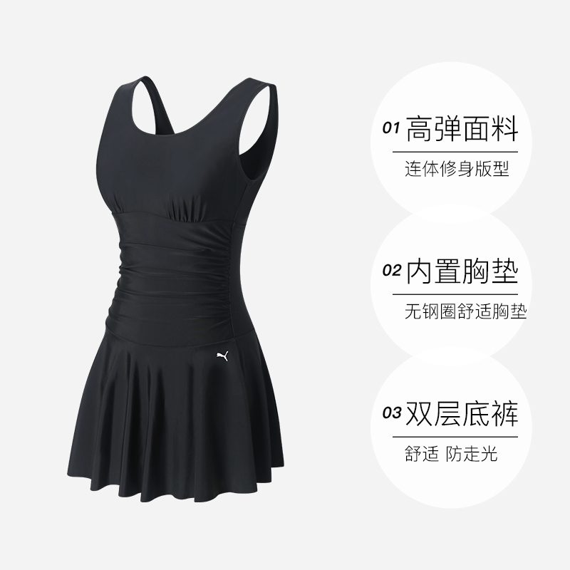 游泳温泉泳装 遮肚显瘦连体裙式 PUMA彪马泳衣女士修身 1件 自营