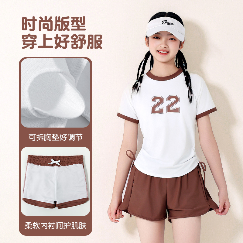 儿童泳衣女孩中大童2025新款 分体运动泳衣宽松防晒初中生游泳套装