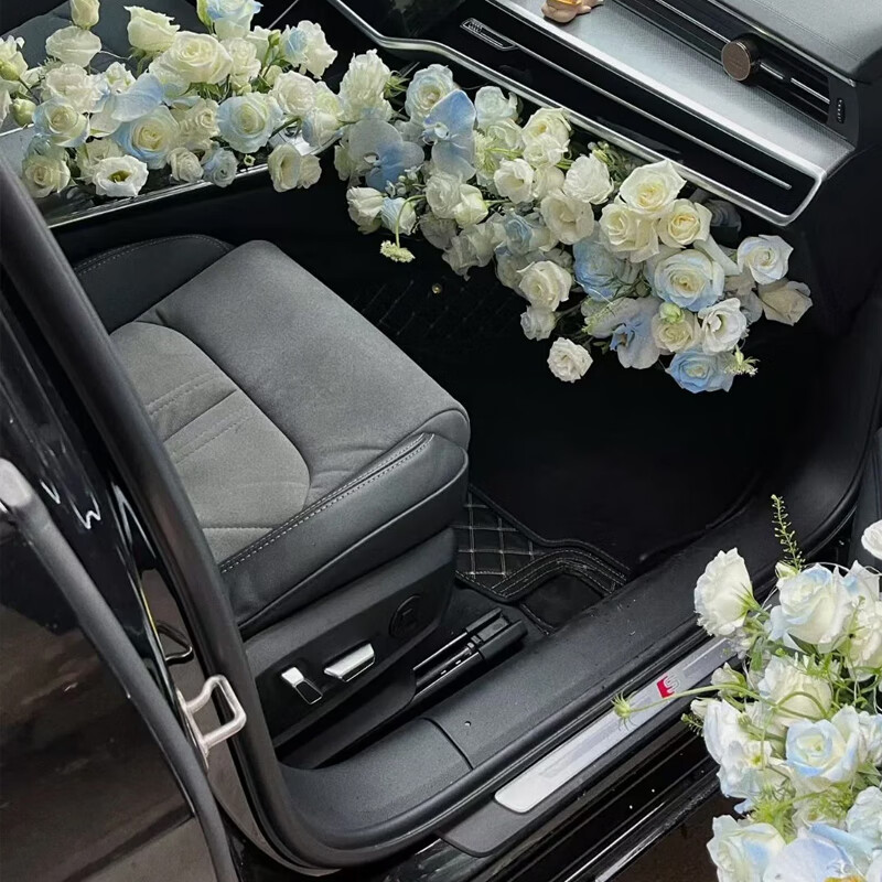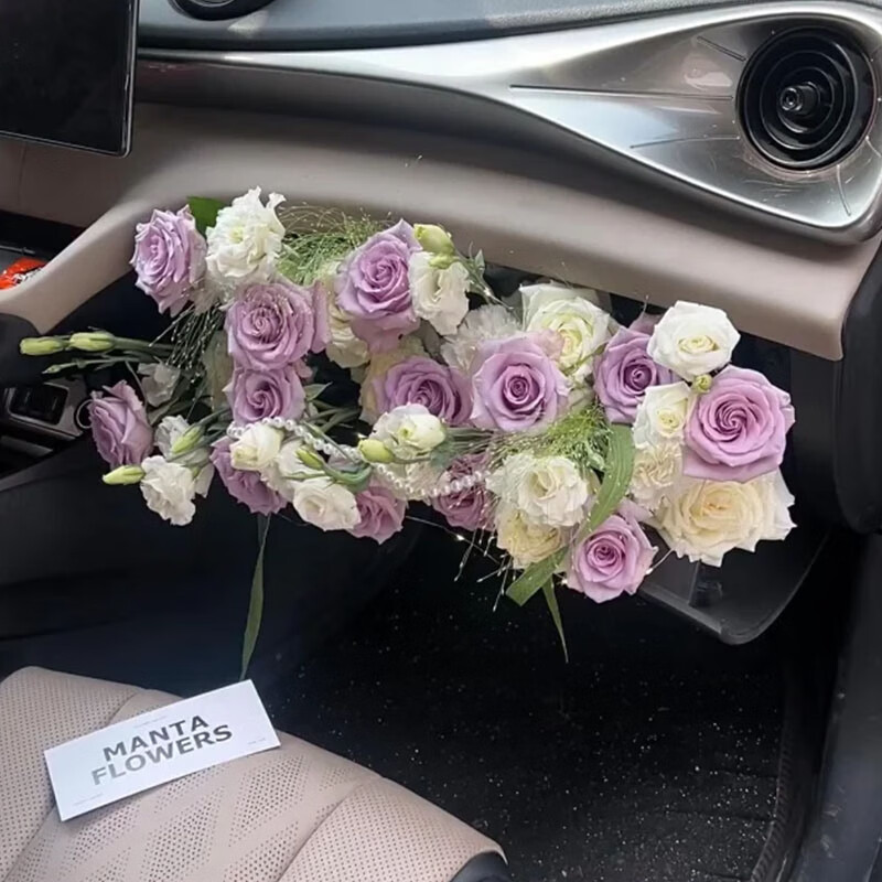 玫瑰车副驾驶储物柜后备箱惊喜鲜花布置求婚表白女友 开车到店