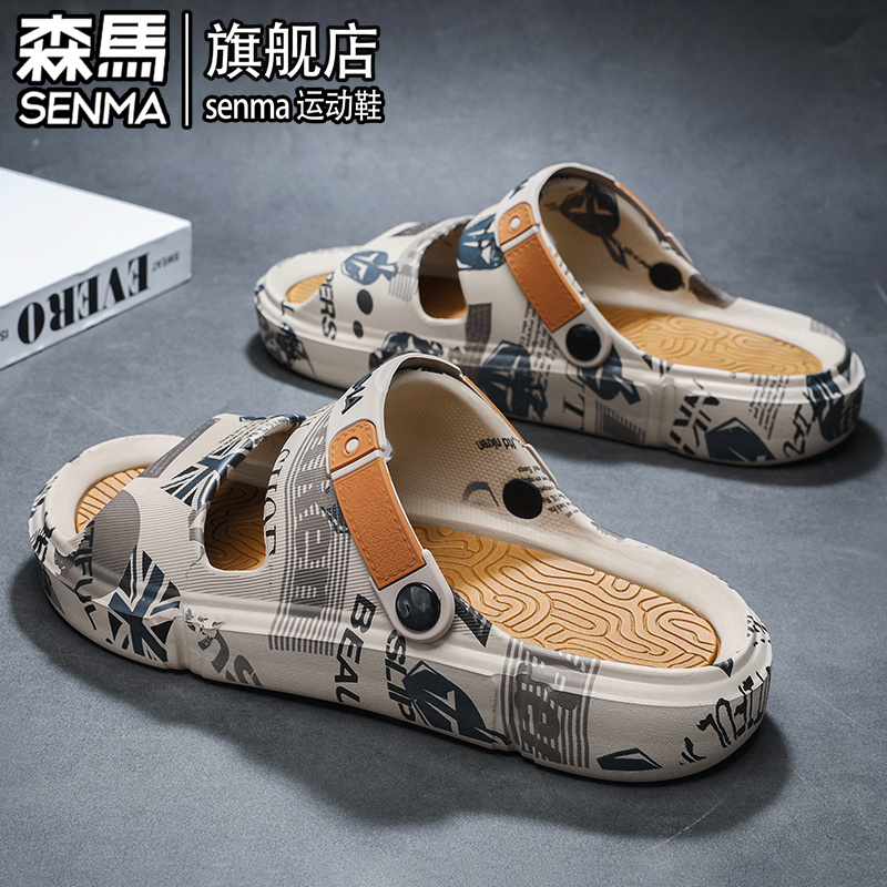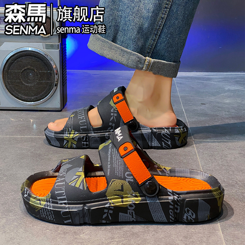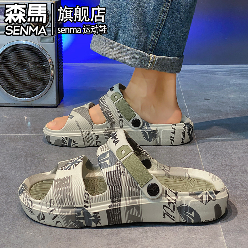 潮牌外穿防滑防臭两用开车踩屎感户外海边沙滩凉鞋 森马拖鞋 男夏季