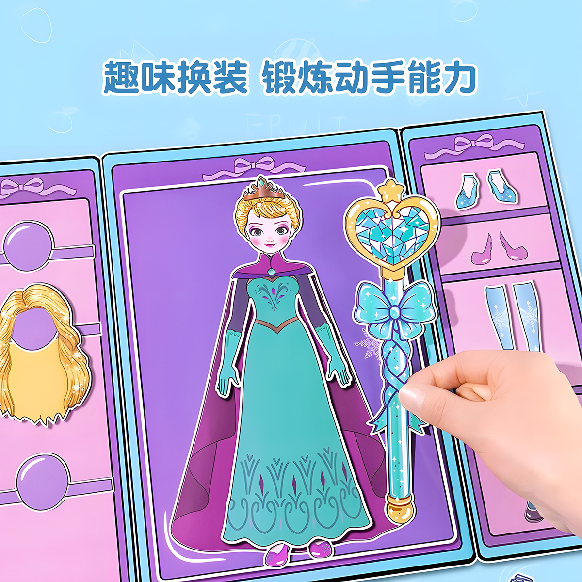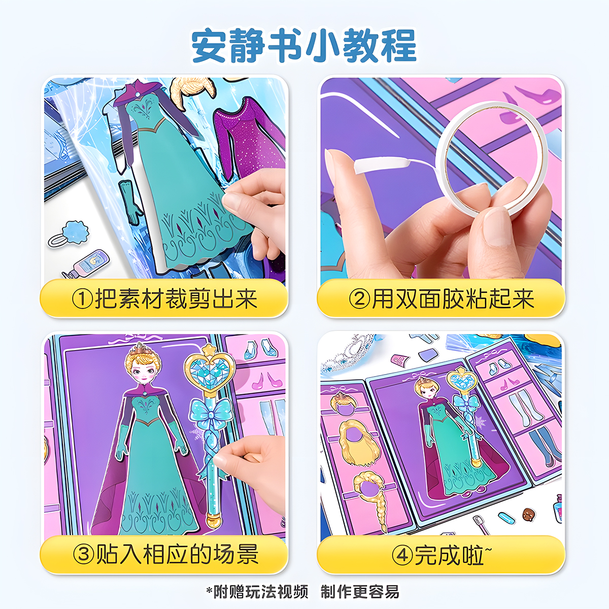 艾莎公主安静书新款 女童儿童玩具手工diy材料 免裁剪女孩爱莎换装