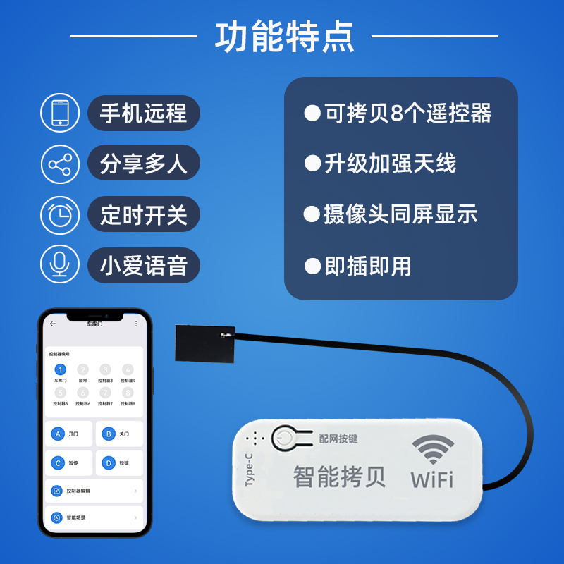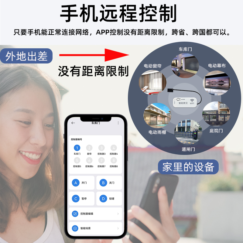 手机远程开门车库门控制器WiFi电动伸缩卷闸道闸门已接入米家APP
