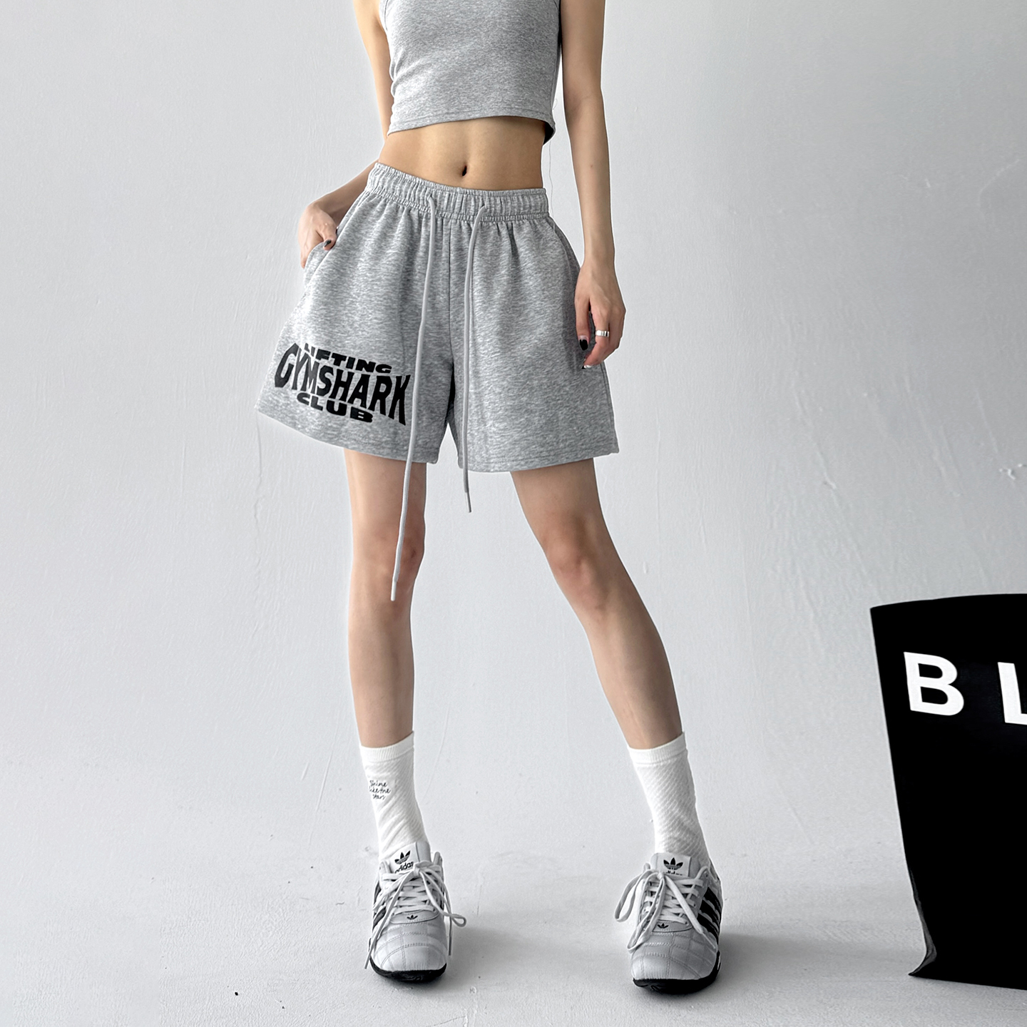 女运动立体刺绣韩系宽松慵懒风五分裤 松紧腰休闲短裤 新款 2025夏季