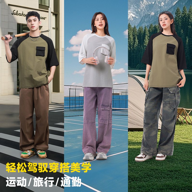 潮牌高街体恤插肩半袖 LY真维斯男女同款 新款 T恤2025夏季 上衣 短袖