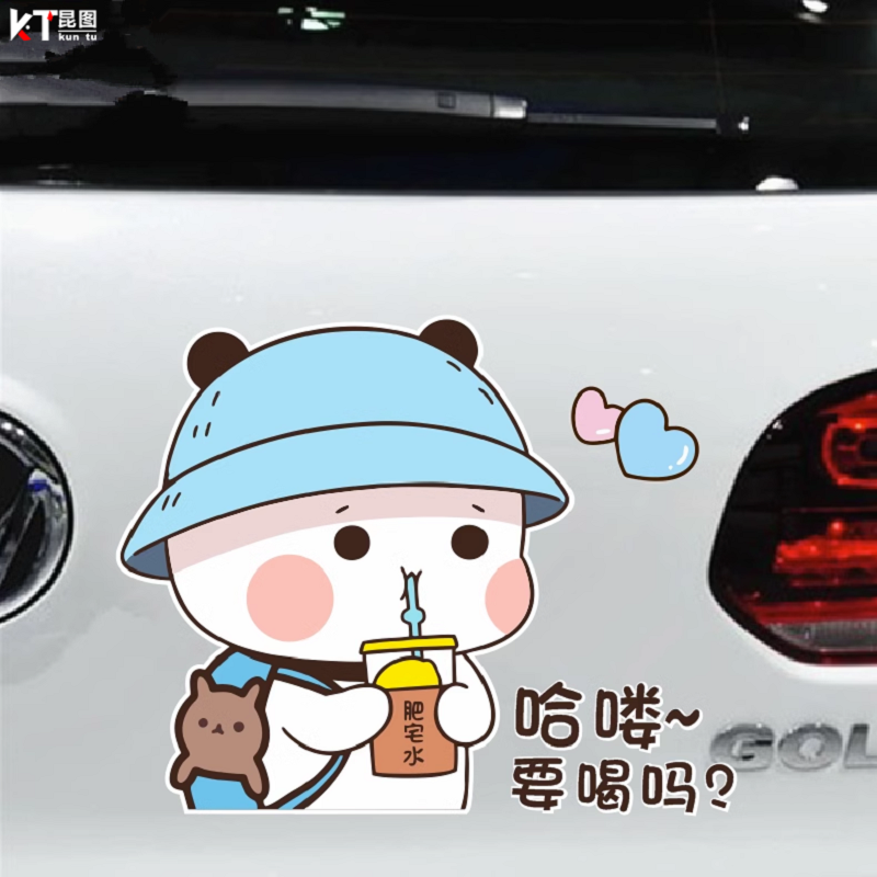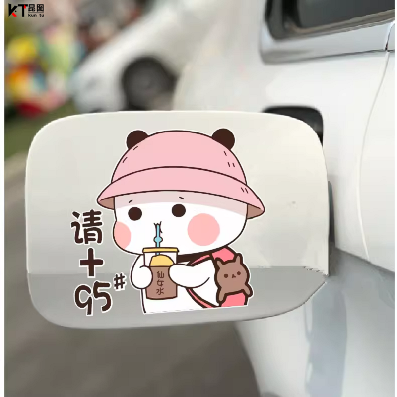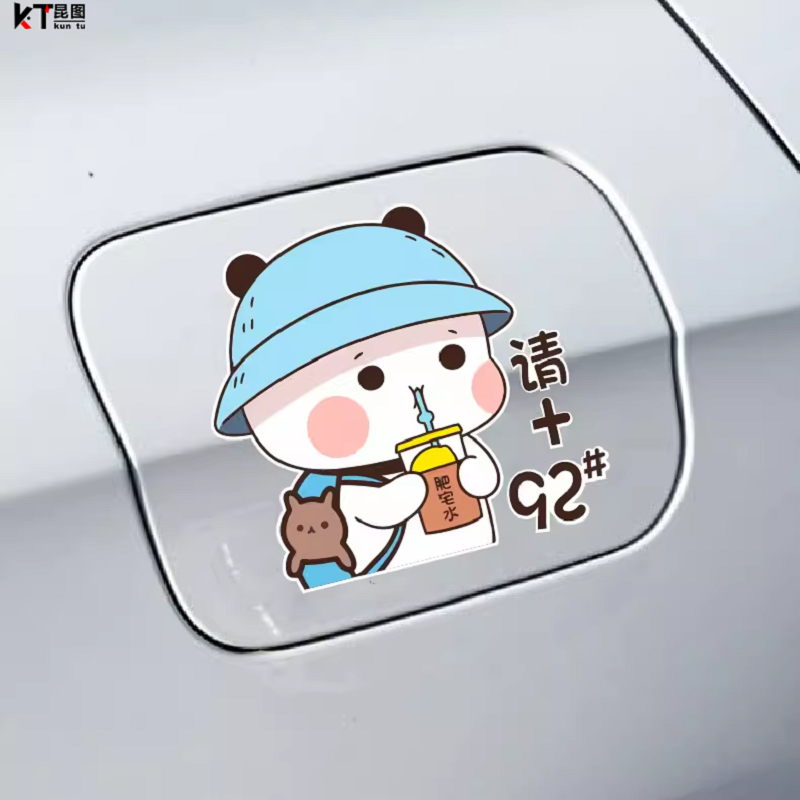汽车油箱盖车贴卡通加油盖贴纸请加油92号95号98装 饰遮挡车身刮痕