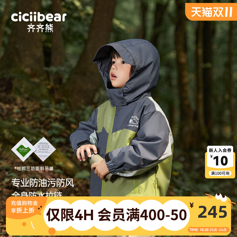 儿童秋冬装 齐齐熊男童冲锋外套宝宝春秋款 三合一上衣 三防户外