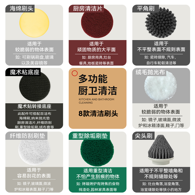 电动刷套装 清洁地板抛光家务刷刷车刷头家用硬毛软毛 地刷电钻洗鞋
