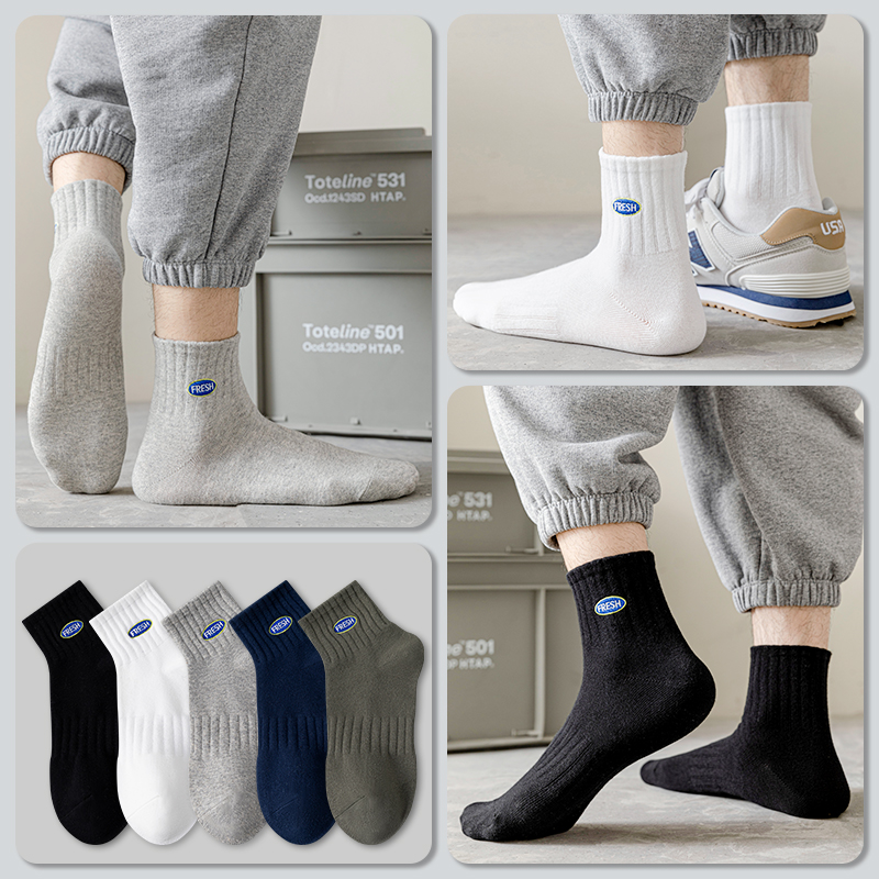 船袜 纯棉夏天短袜男士 雅鹿袜子男中筒防臭吸汗抗菌夏季 长袜薄款