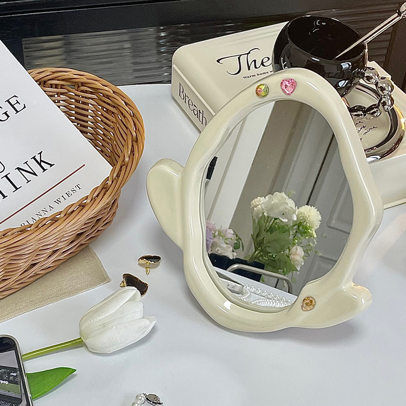 台式 饰品摆件 化妆镜风美妆桌面家用女可立随身梳妆镜石托盘家居装