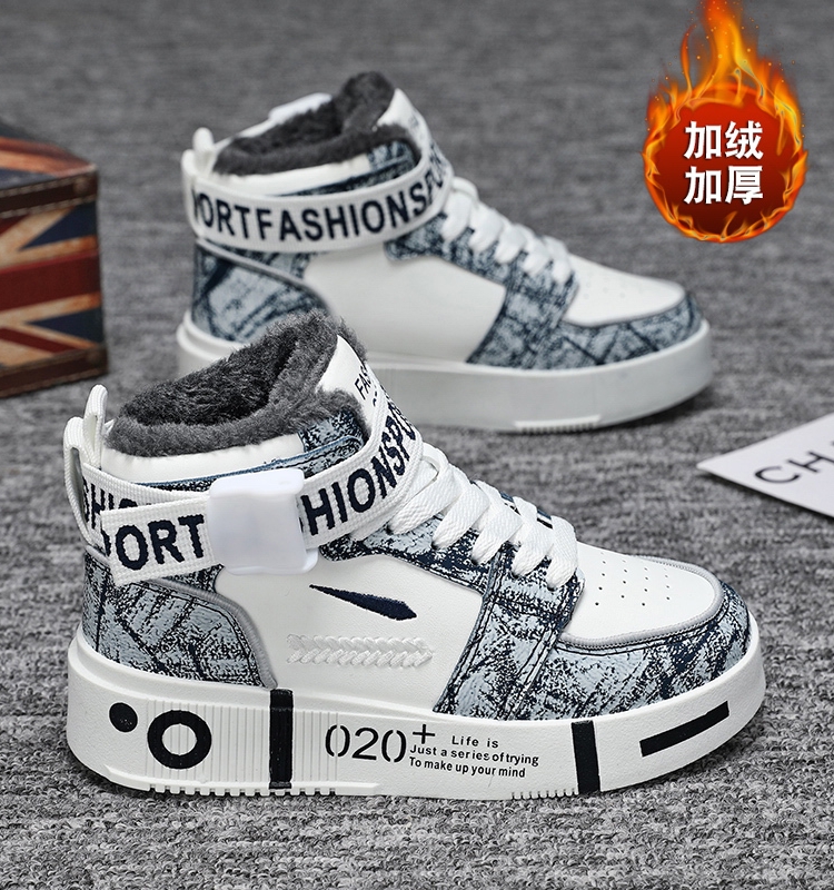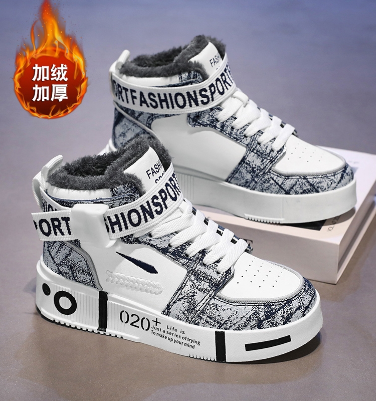 新款 百搭休闲鞋 保暖高帮板鞋 特步板鞋 潮流鞋 秋季 情侣运动鞋 子 男鞋