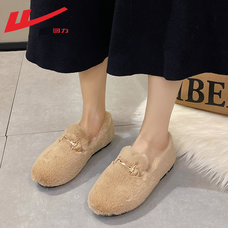 女豆豆鞋 回力毛毛鞋 棉鞋 一脚蹬孕妇鞋 女冬加绒 女秋冬外穿2025新款