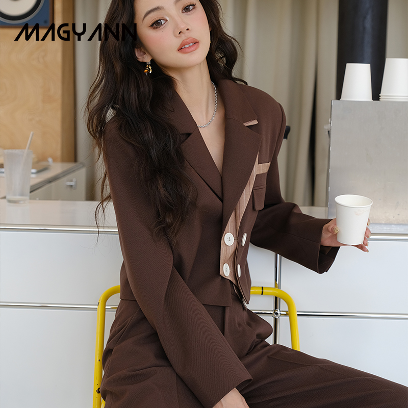 裤 宽松直筒西装 Magyann设计师原创条纹撞色口袋阔腿裤 女 梧桐