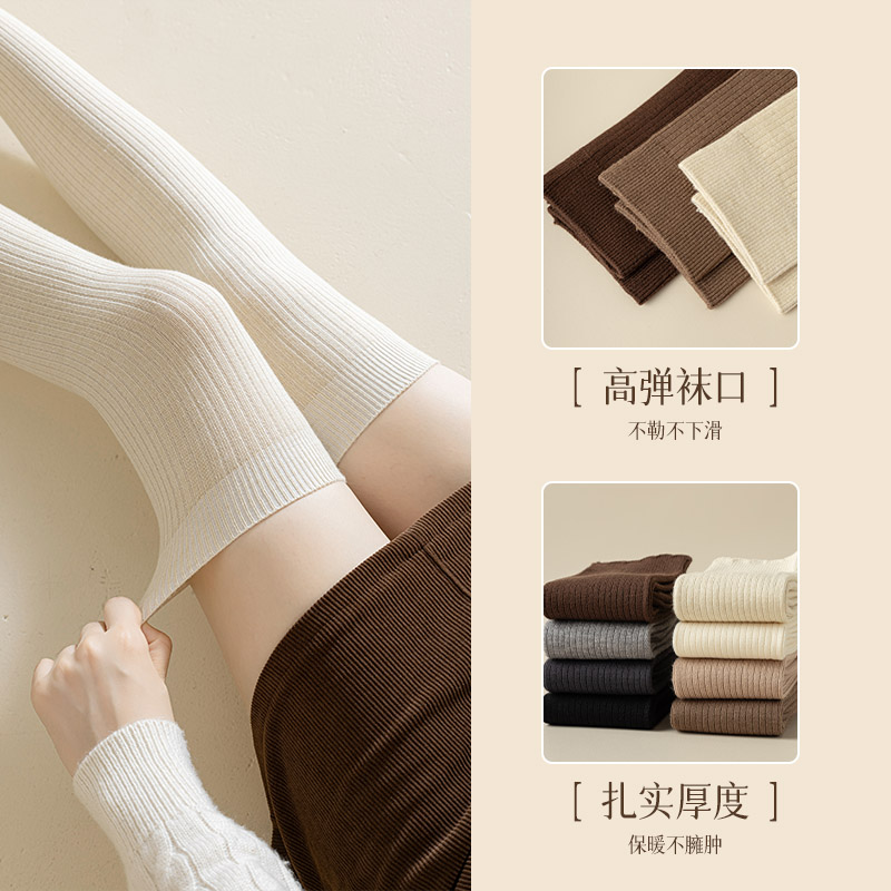 长筒靴袜子女搭配靴子小腿堆堆过膝袜春秋内搭白色大腿长筒袜羊毛