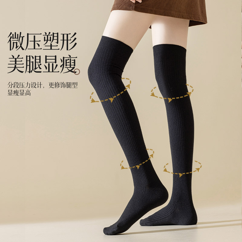 雅鹿过膝袜子女长筒袜秋冬款 长腿棉袜护膝袜套 加厚小腿袜长袜冬季