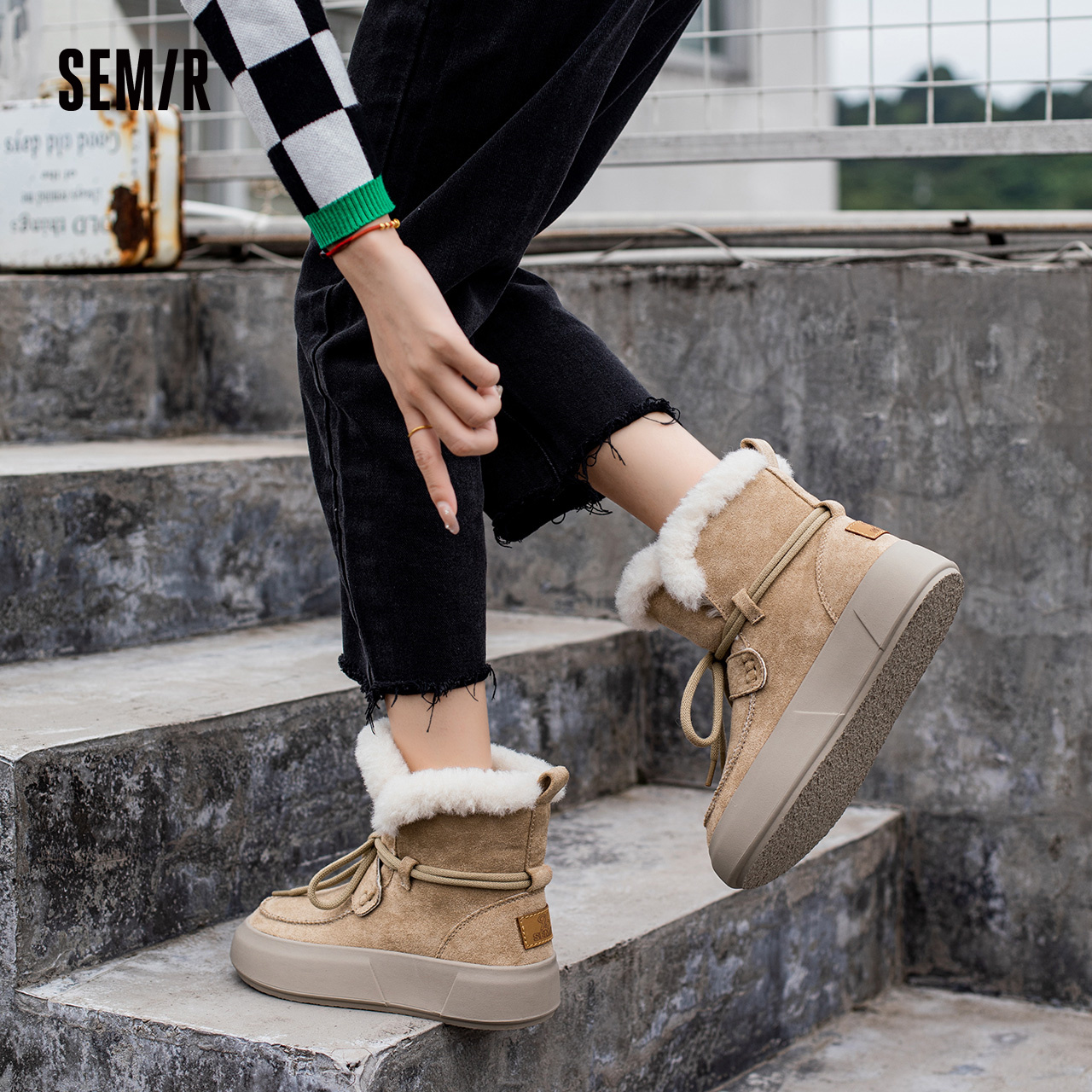 鞋 新款 子女加绒厚底百搭休闲风一脚蹬 2025春秋季 Semir雪地靴女款