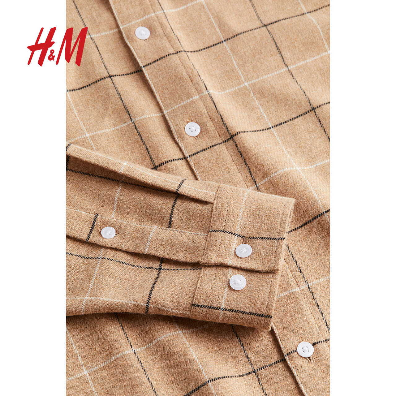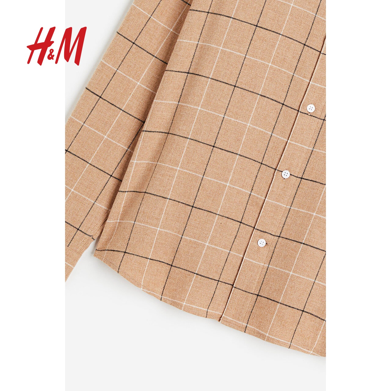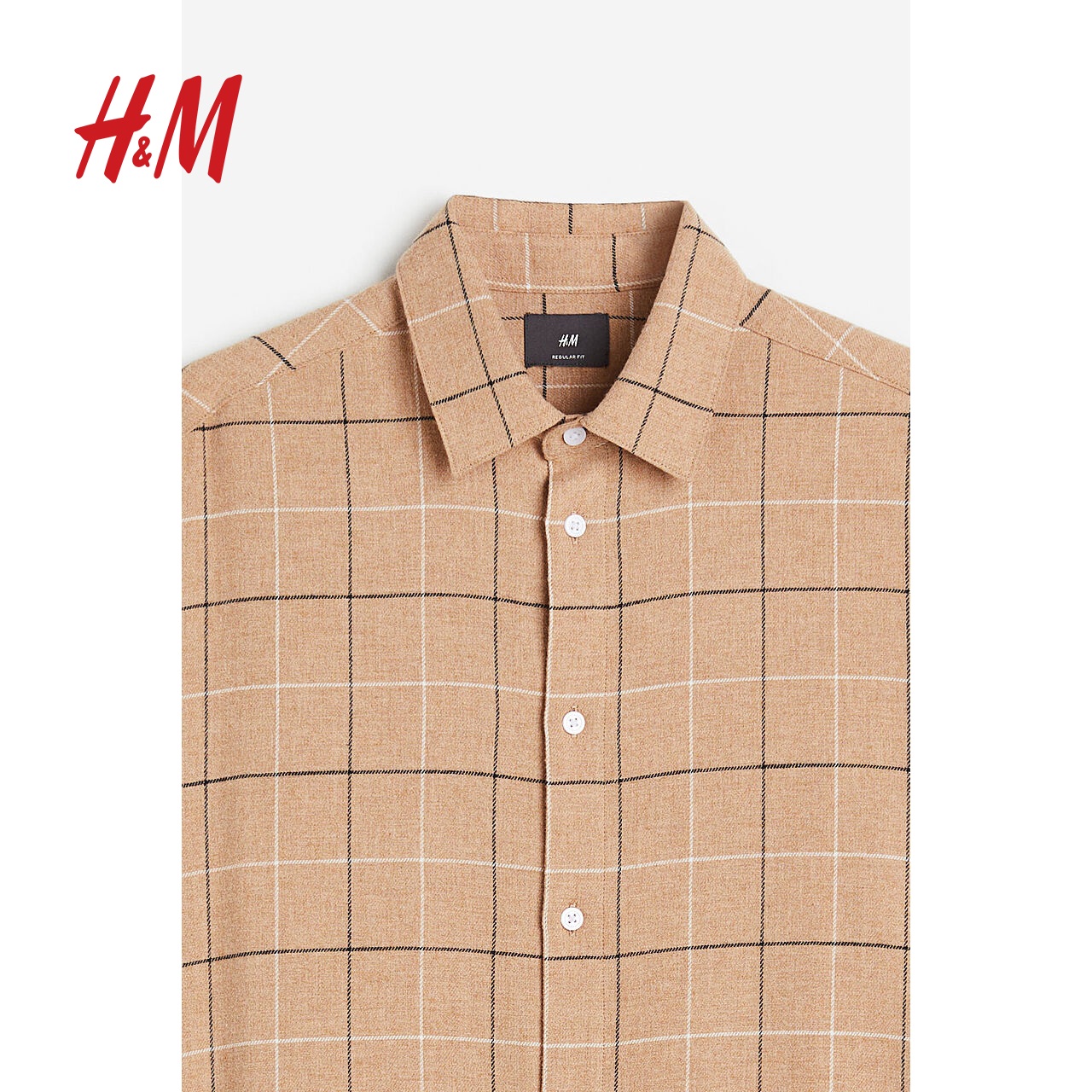 休闲流行格纹翻折领舒适长袖 秋季 上衣0827280 衬衫 HM男装