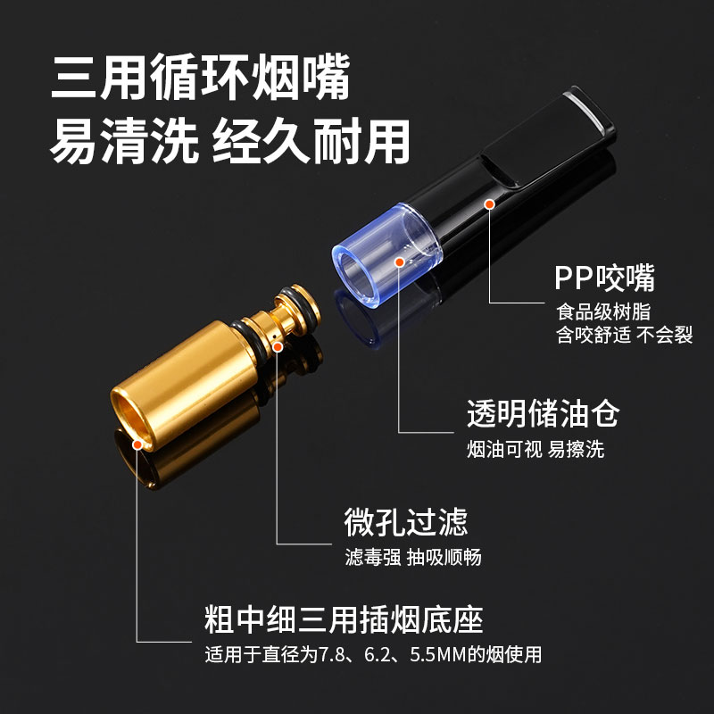 专用焦油过滤嘴 循环型可清洗烟嘴过滤器粗中细三用男士 买1发5