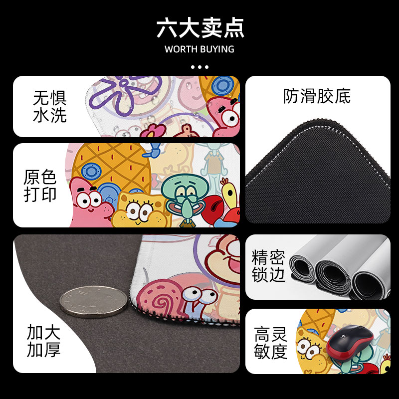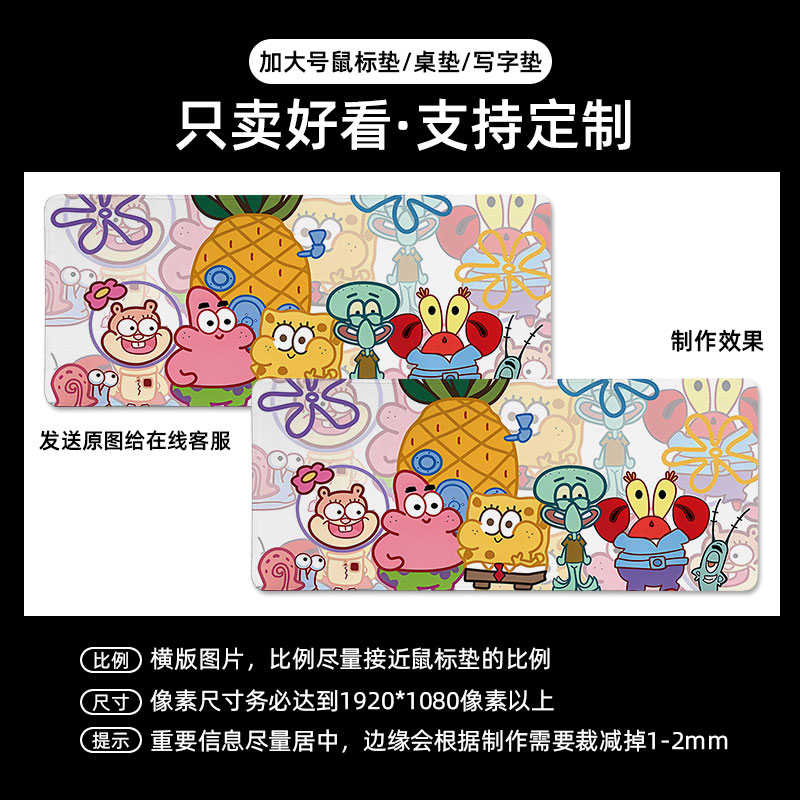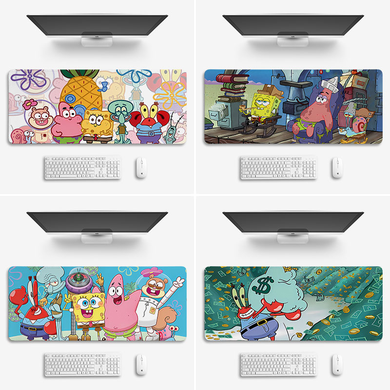 海绵宝宝鼠标垫子派大星超大号桌垫办公电脑键盘垫锁边章鱼哥动漫