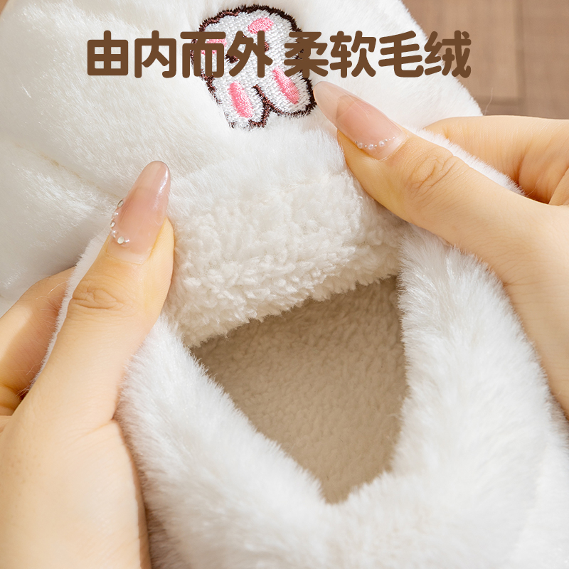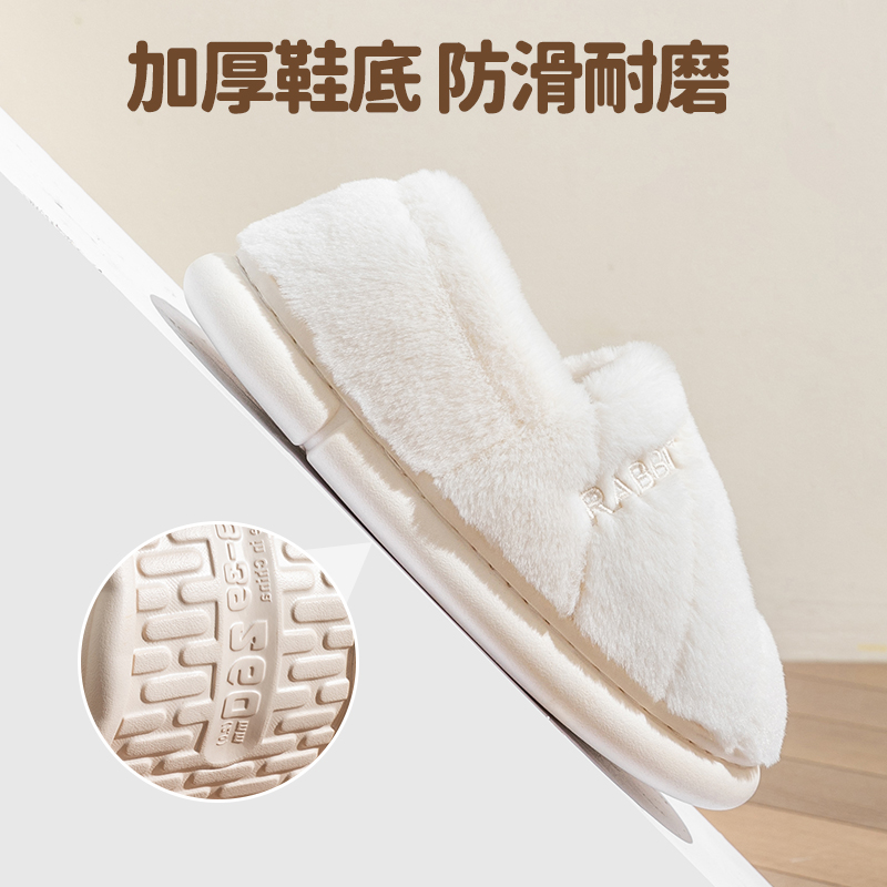 男 室内居家用保暖防滑厚底情侣外穿加绒棉鞋 包跟棉拖鞋 女士秋冬季