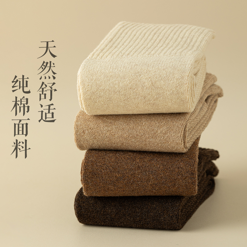 小腿袜子女纯棉春秋季 高筒咖色及膝袜半筒 压力袜套长筒全棉秋冬款