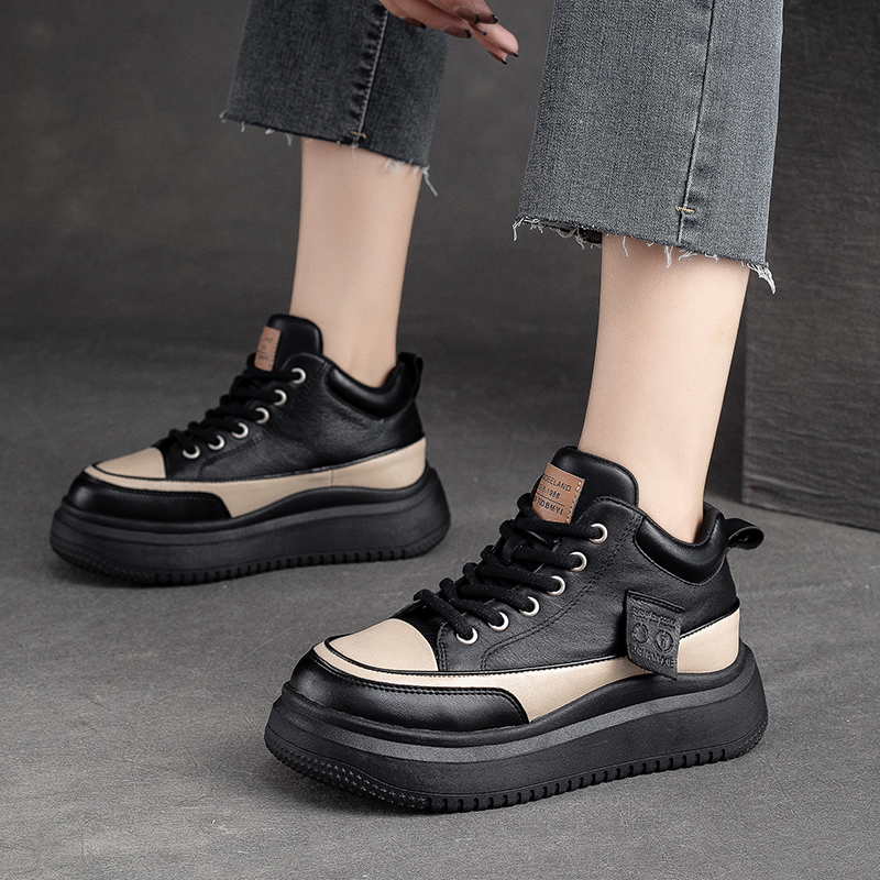 百搭头层牛皮运动休闲女鞋 厚底板鞋 真皮舒适女高帮鞋 2024秋冬新款