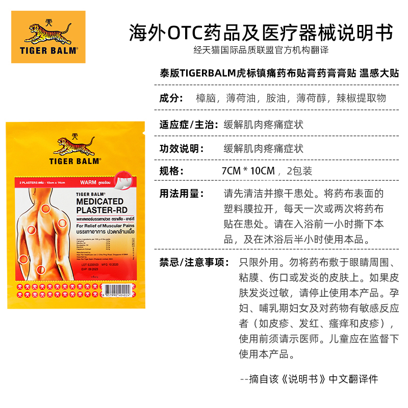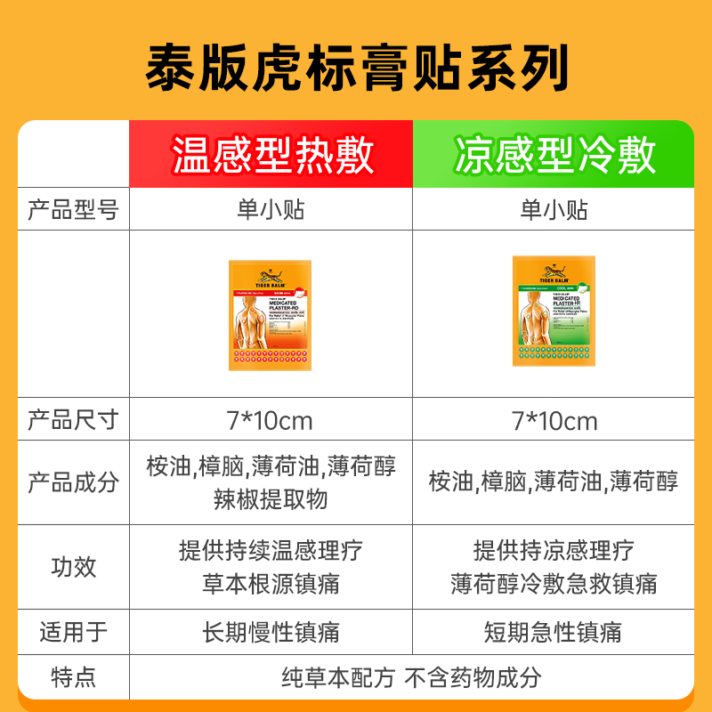 泰国版 TigerBalm虎标镇痛贴膏虎牌镇痛药布跌打损伤药膏清凉温感