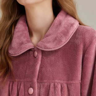 大码 春秋开衫 女士家居服 加厚珊瑚绒睡衣女冬法兰绒加绒套装 秋冬季