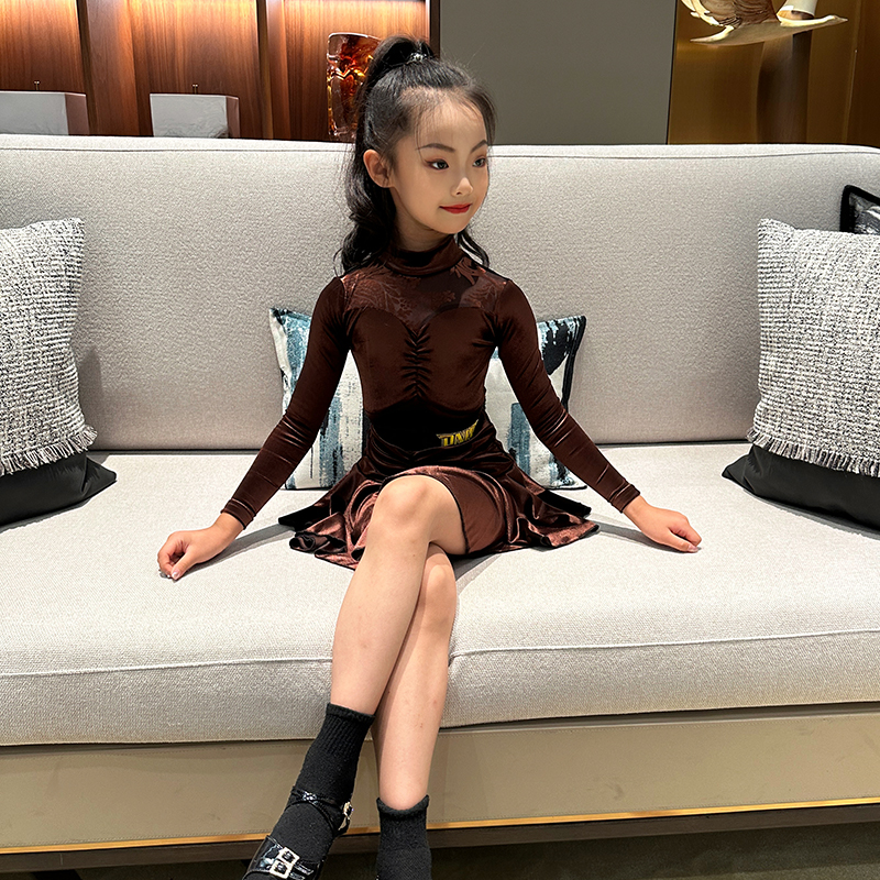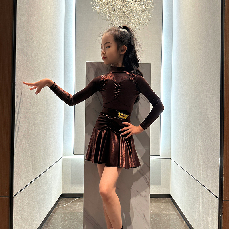 DNW秋冬少儿演出舞蹈裙练习舞服女童表演服装 儿童拉丁练功服舞服