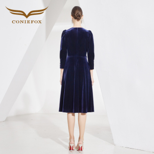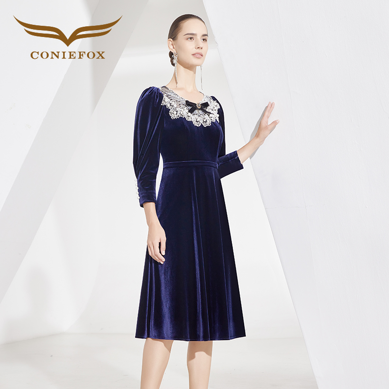 创意狐礼服裙女宴会气质中长款 婚礼婚宴妈妈小礼裙连衣裙婆婆晚装