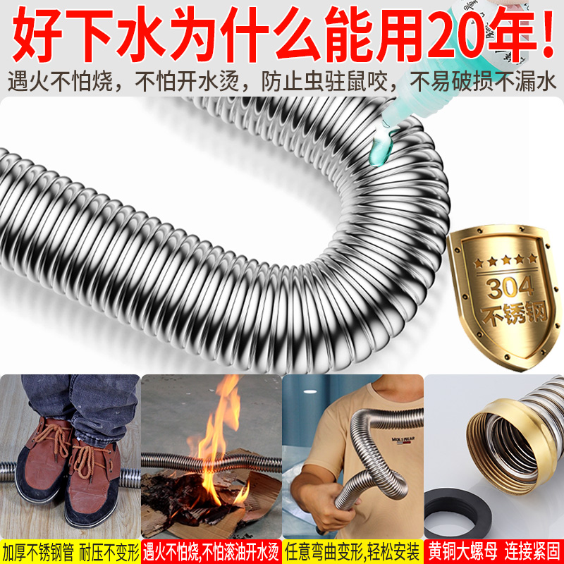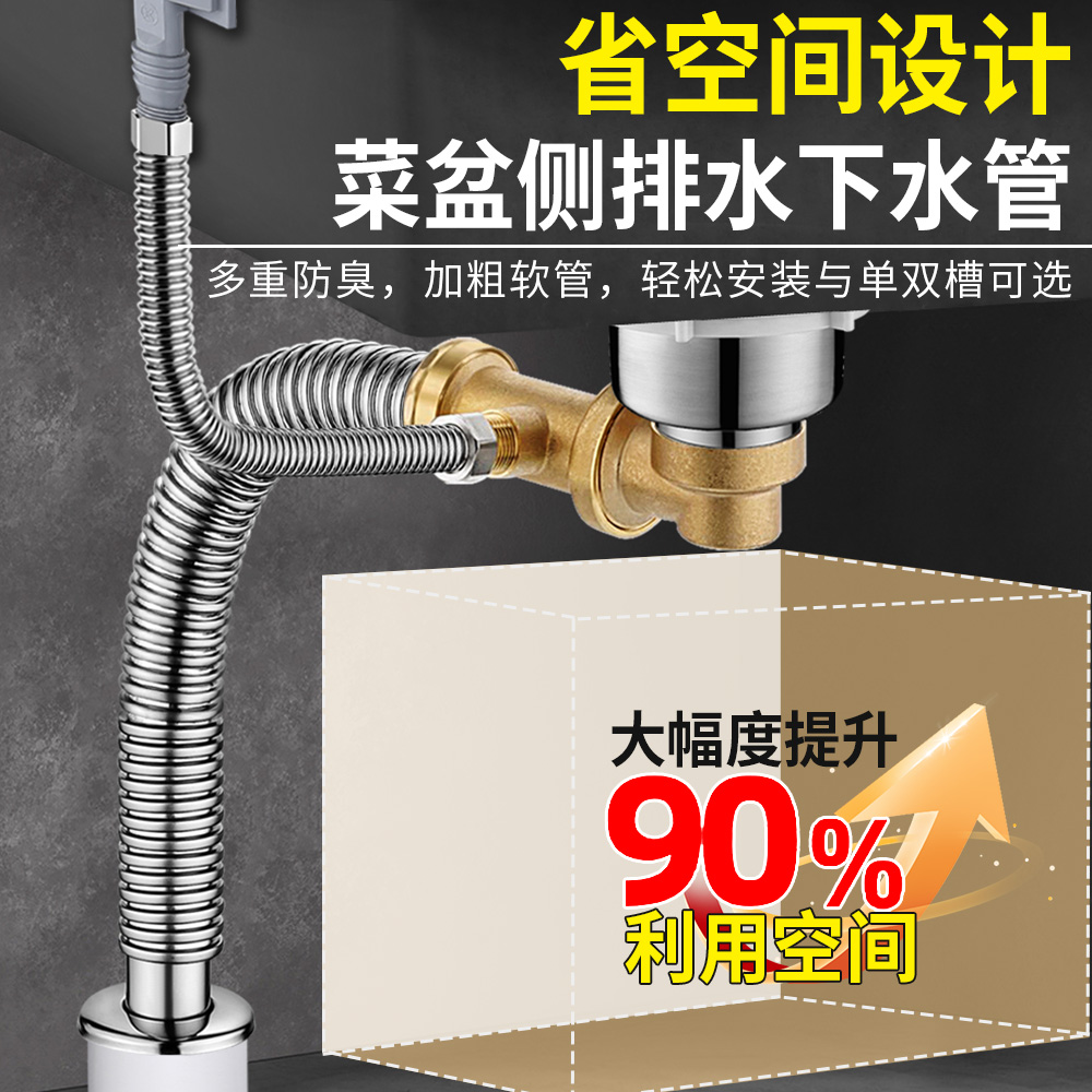 厨房下水器配件套装 洗菜盆防臭水槽不锈钢台盆排水管道全套大侧单