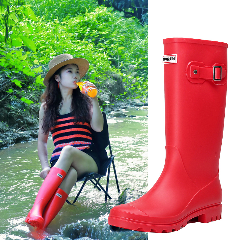胶鞋 云钻时尚 惠灵顿赶海溯溪红色雨靴长筒套鞋 女高筒防滑水鞋 雨鞋