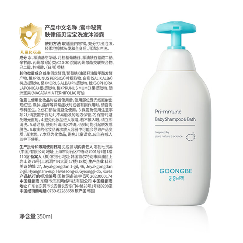 宫中秘策肤律倍贝系列乳液250ml洗浴二合一350ml长效保湿 护肤套装