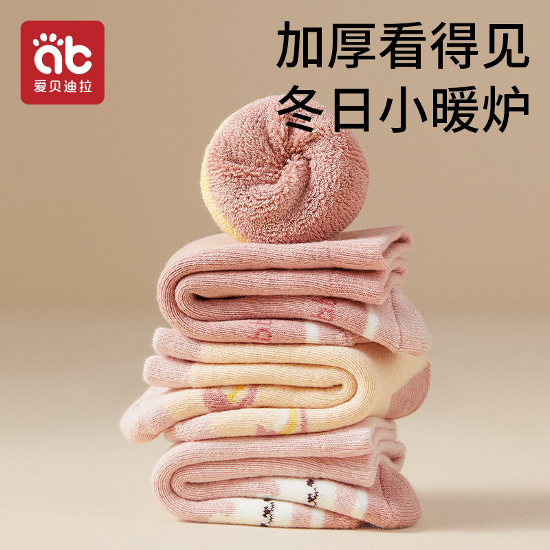 婴儿袜子冬季 加厚加绒新生婴幼儿宝宝0到3月秋冬纯棉a类中筒毛圈
