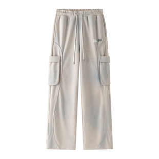 休闲裤 TOFOURTH针织裤 男女同款 杏色宽松松紧腰长裤 商场同款